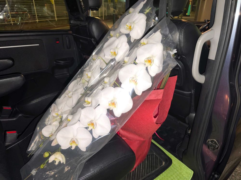 交差点を曲がる時やブレーキの時に後ろで胡蝶蘭がひっくり返らないかドキドキでした😂