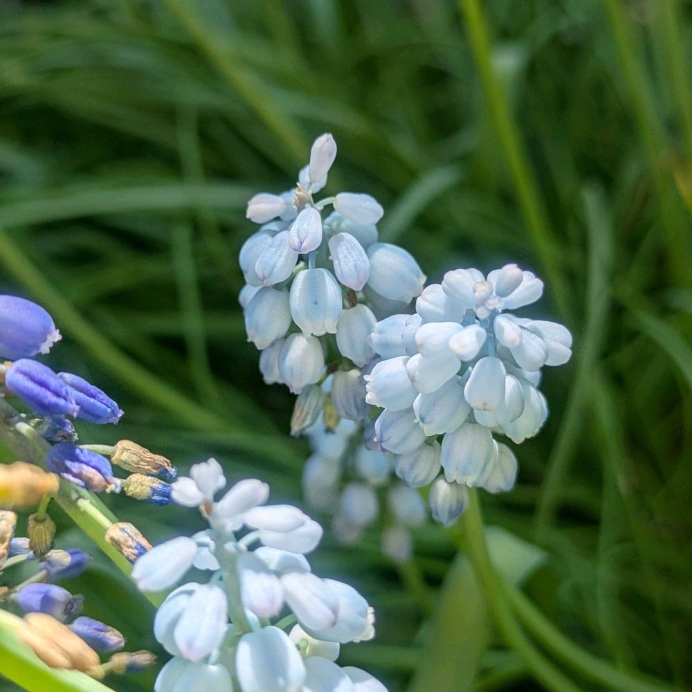 ムスカリはスカイブルーとホワイトが出てきて、去年植えたっけ?と覚えてませんが可愛いꉂ🤭