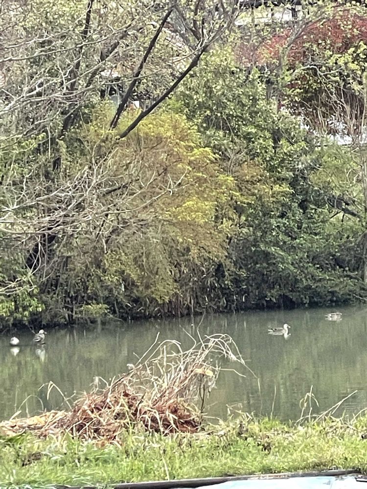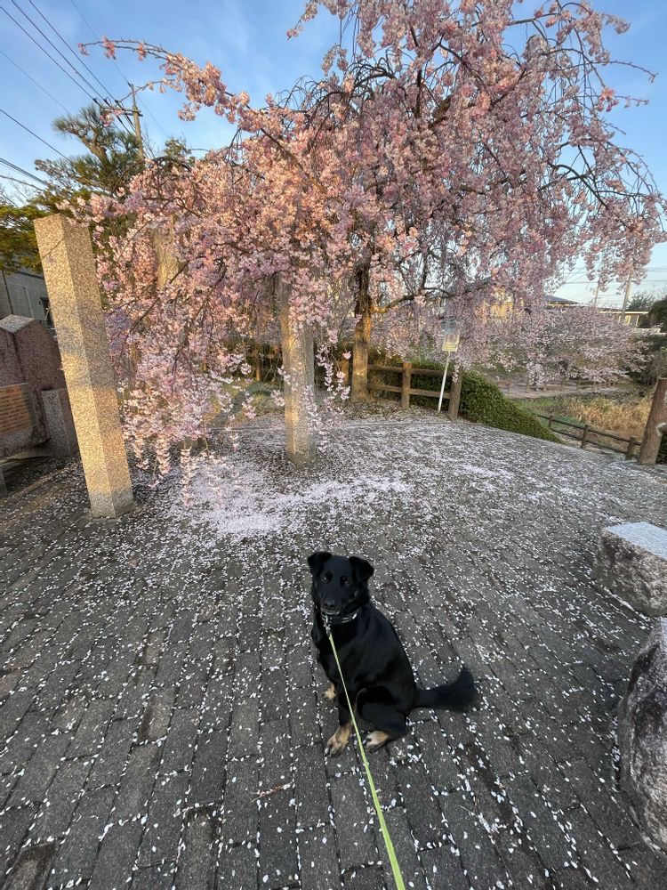 久々のよしくん🐕🦺クイズです。芝桜と近所の枝垂れ桜と実家の双子ちゃんツバキ。4月なのにまだ近所の溜池に残り鴨🦆4羽。