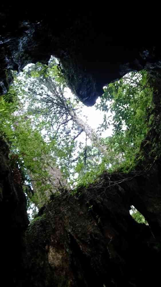 株の中の10畳ほどの空洞には 清水が湧き出ており 木魂神社の祭られる祠がある