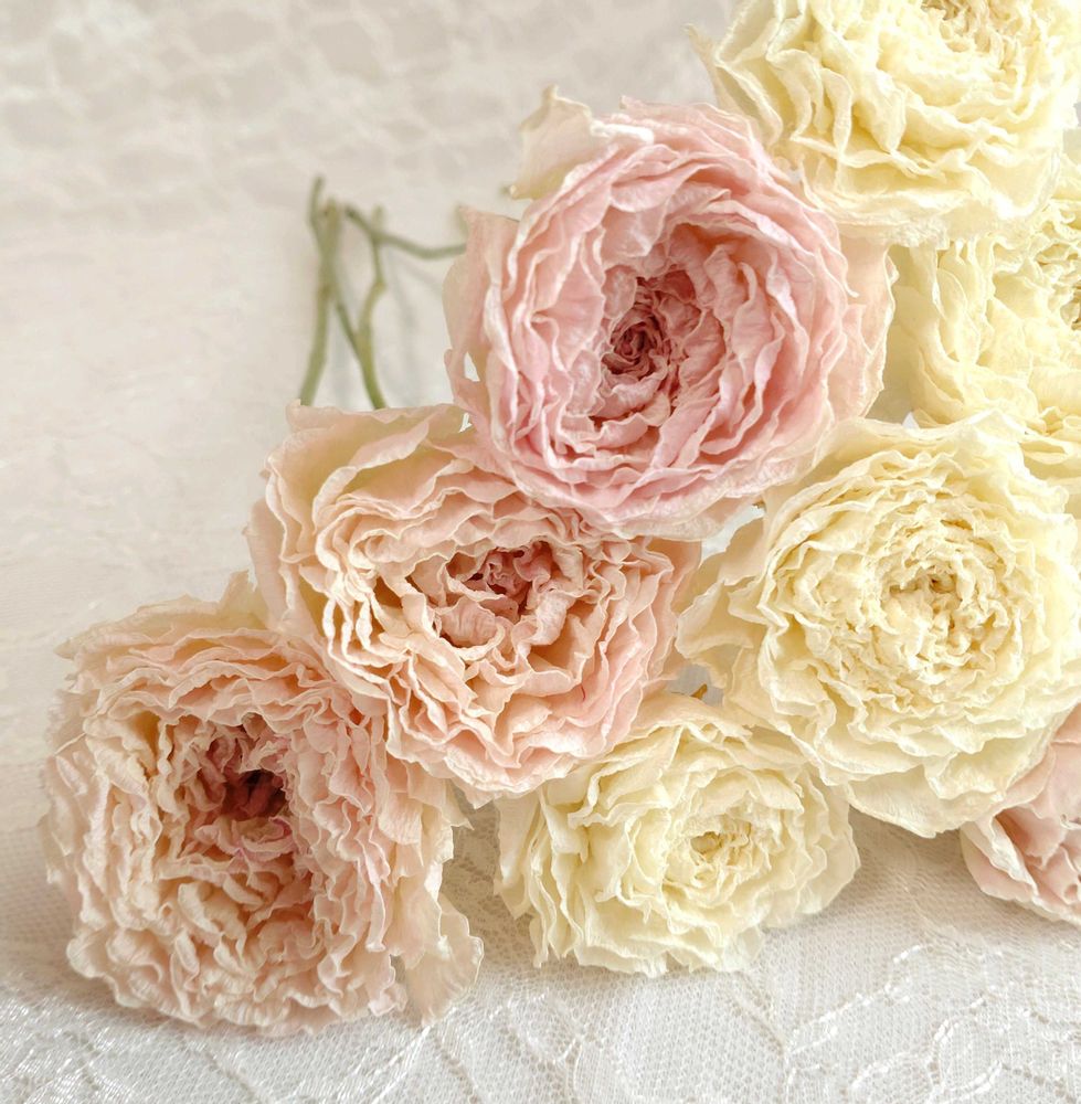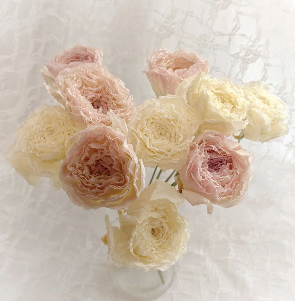 ラナンキュラスの桜色と白がドライフラワーになりましたー🤍🩷