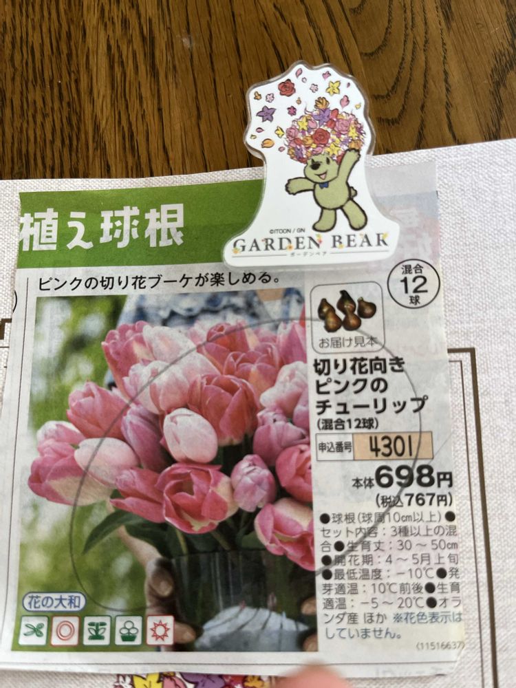 カタログの球根の値段や品番のところに、ちっちゃく書いあります(笑)