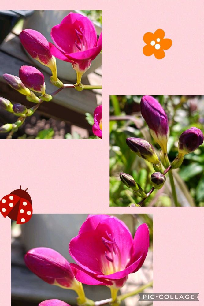 2枚目は、毎年横に倒れまくるフリージアがやっと咲きました(^-^)
