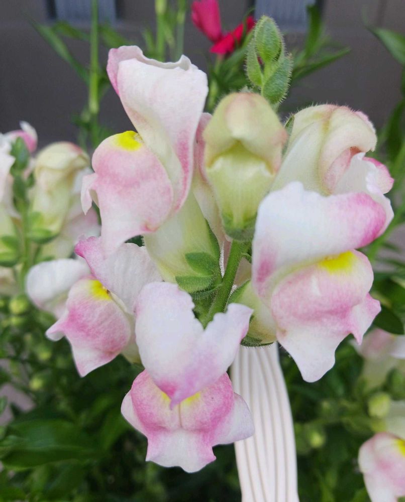 (2枚目は購入当時)当時咲いてたストックが終わり、キンギョソウが咲いてきました!こんなに可愛いピンクのキンギョソウやったとわ😄(3枚目)