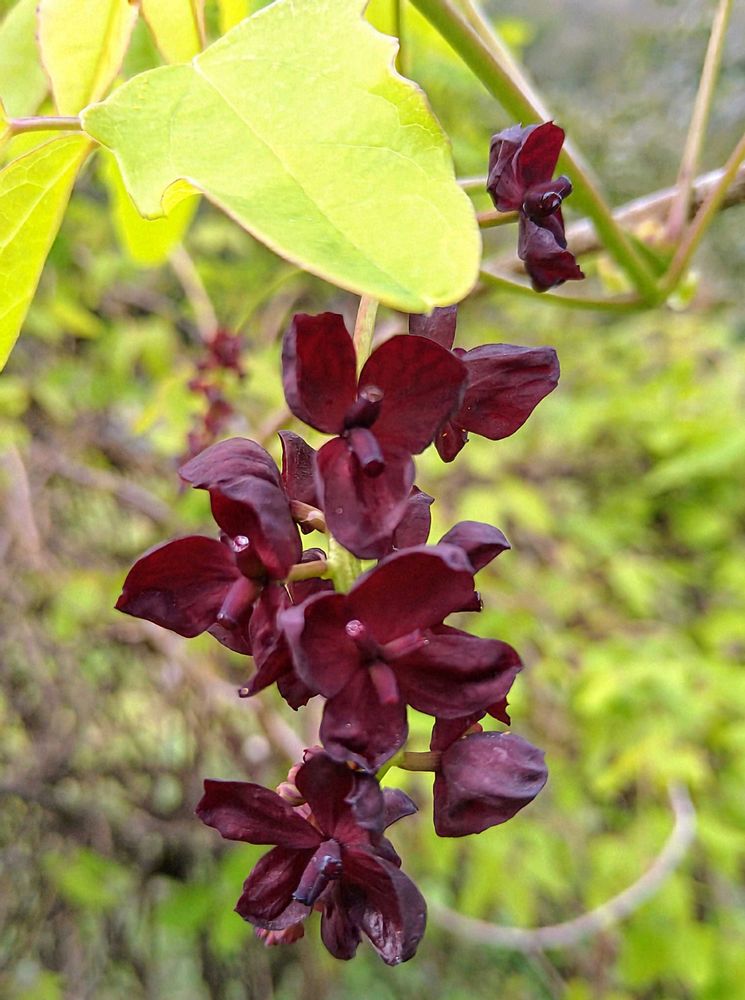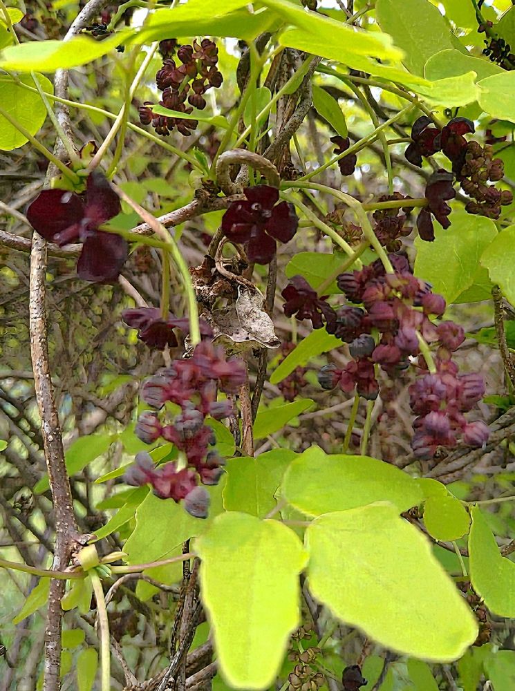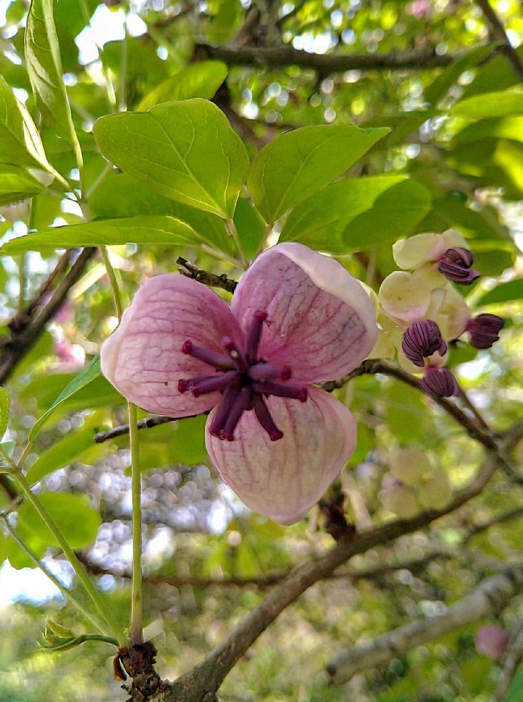 お隣りにはミツバアケビが、満開になっています✨🤎✨