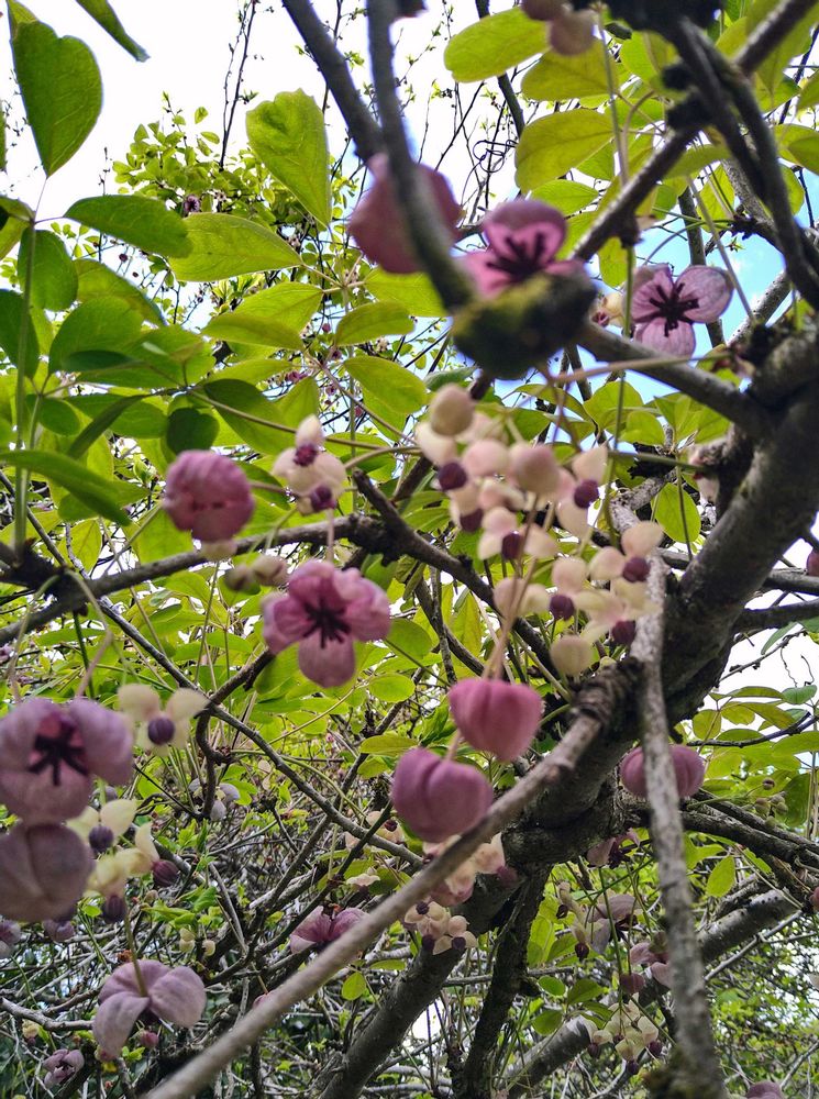 梅の木に絡んだアケビにたくさん花が付きました✨🩷✨