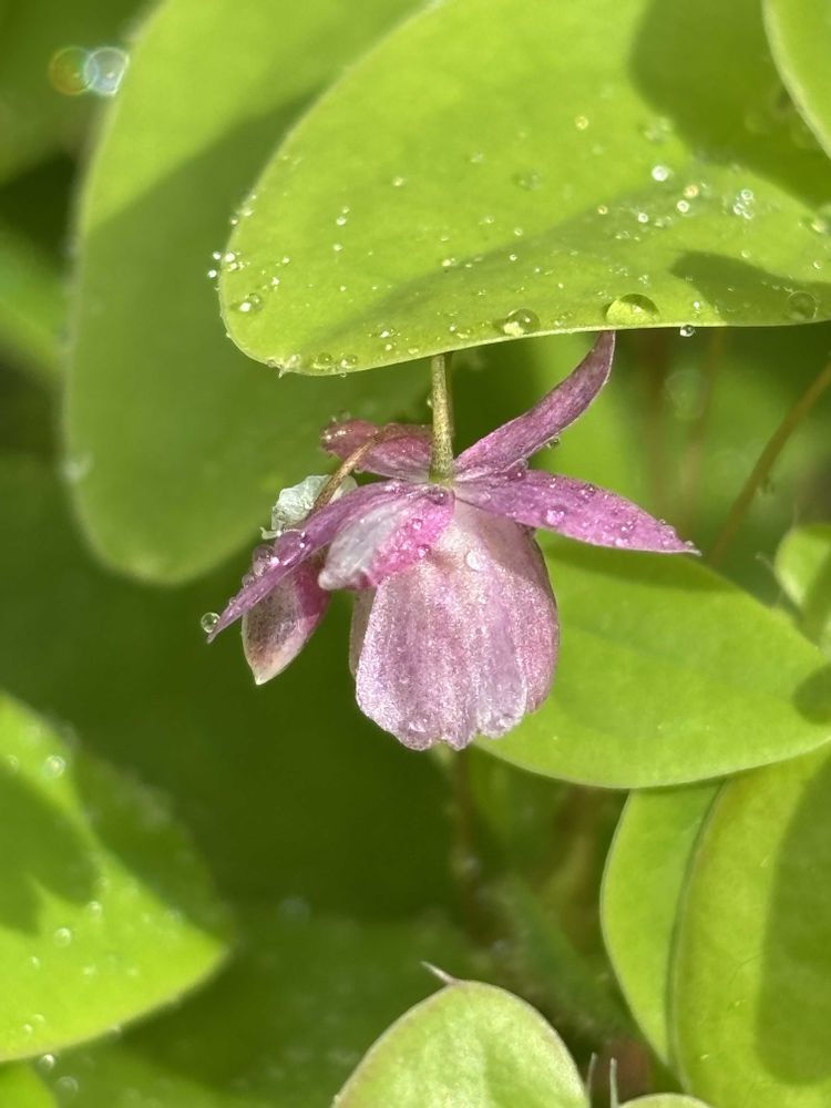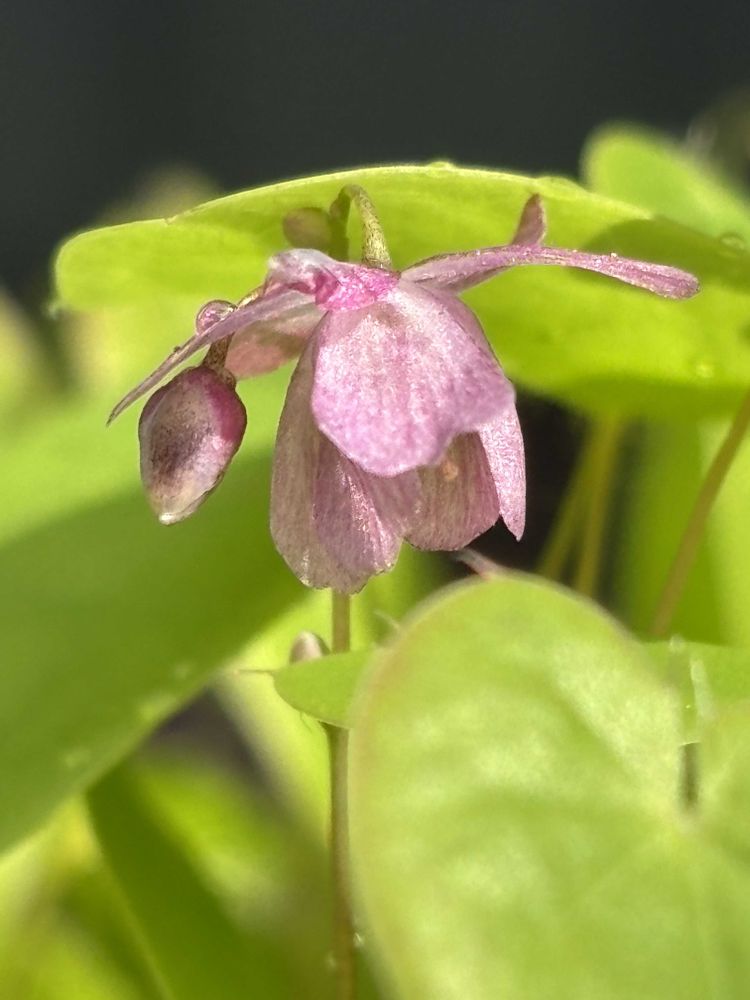 先日の黄色のバイカイカリソウは、葉が出る前に咲いたけど、この子は葉が出てから咲くタイプ。花の大きさも違います。黄色は2cm程で、ピンクは1cm程。どんな違いがあるんだろう🤔まっ、いっか。かわいきゃいいでしょ😅