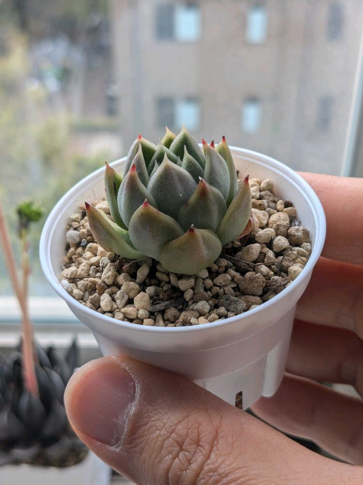 2024.07.01 突如多肉植物に興味を持ちました。 2025.07.01 無事(?)2年生に進級。 スペースもないのに実生に手を出し、芽が出た、本葉が出たと一喜一憂しています。綺麗系を綺麗に育てるのが目標です🤣