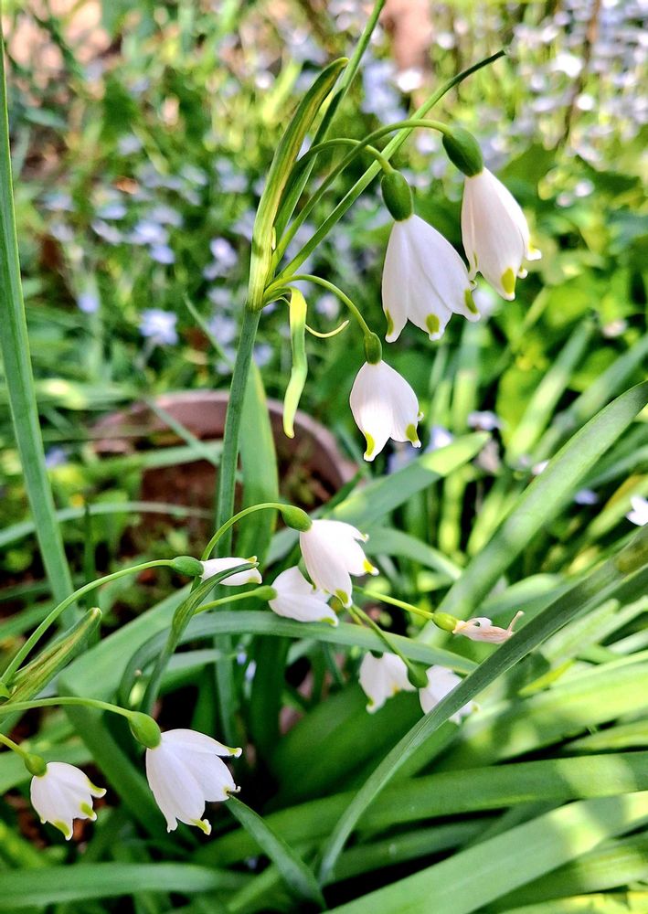 ④柚子の木の下の日陰ですが、スノーフレークが健気に咲いています😌