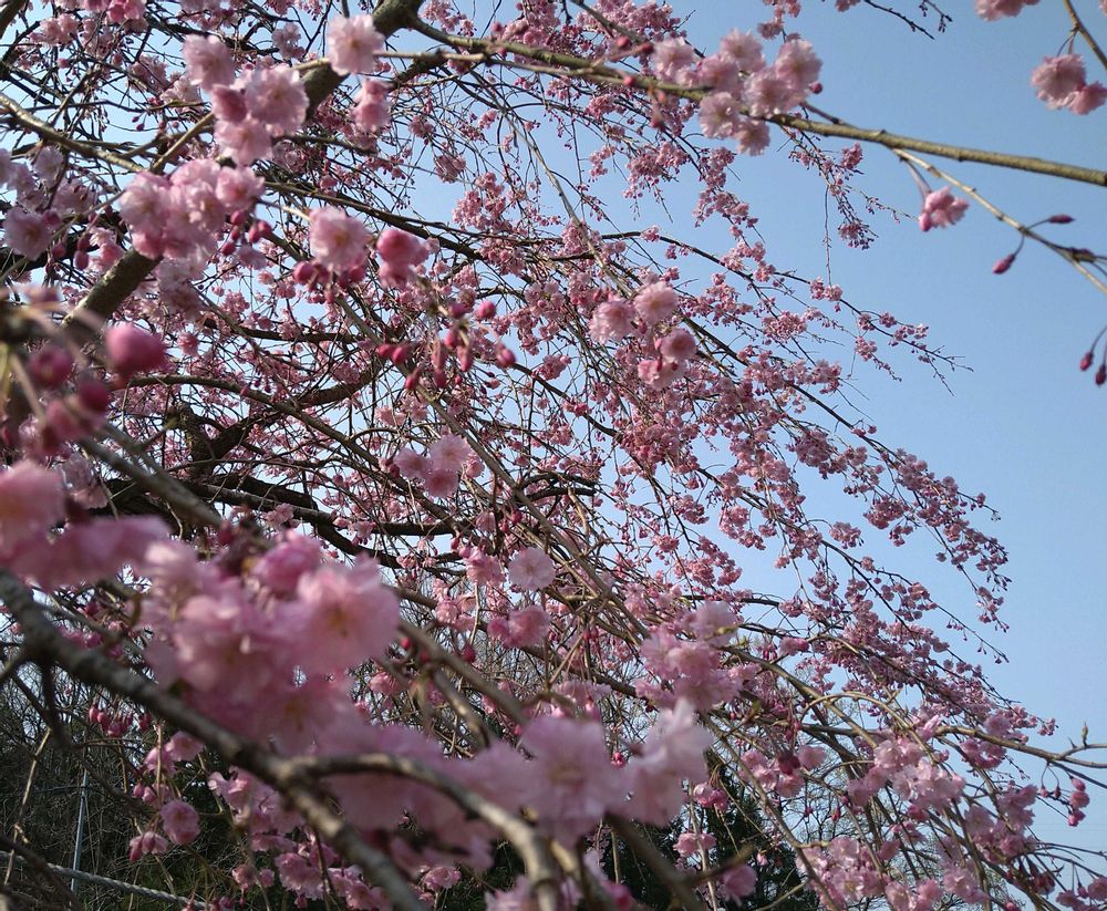 ②今朝の枝垂れ桜🌸八分咲きかな〜