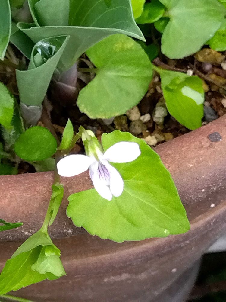 ギボウシの鉢にスミレ❗️