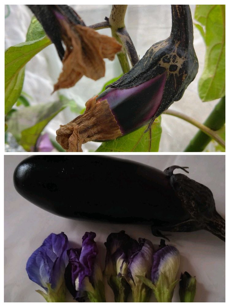 1⃣ 🏷今日のお花 茄子🍆ナスの実とバタフライピーの花