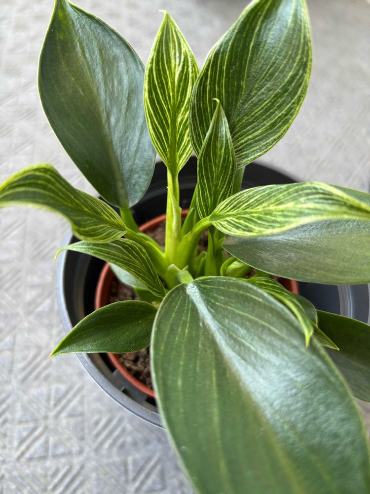 2025.8月に某サイトで購入した【アロカシア チャイ】の 突然変異?なんだろう 購入時、元々有った葉を(1枚目の葉)として、 下から新たな葉が出てきてる状態で到着しました(2枚目の葉) こちらに来て初めて出てきた葉に異変が。。 育て始めて出てきた初めての3枚目、4枚目 (途中から、斑1、斑2、、と続きます) どこまでこの謎の斑入葉が続くのか、 いや止まるのか……記録していきます