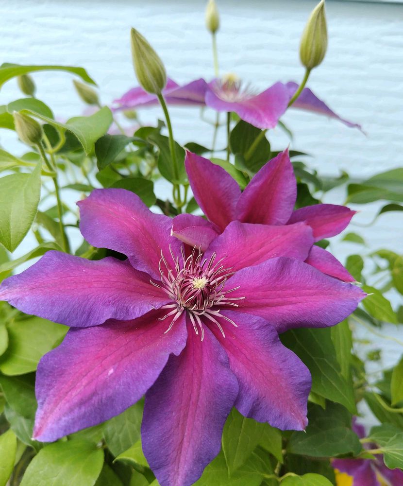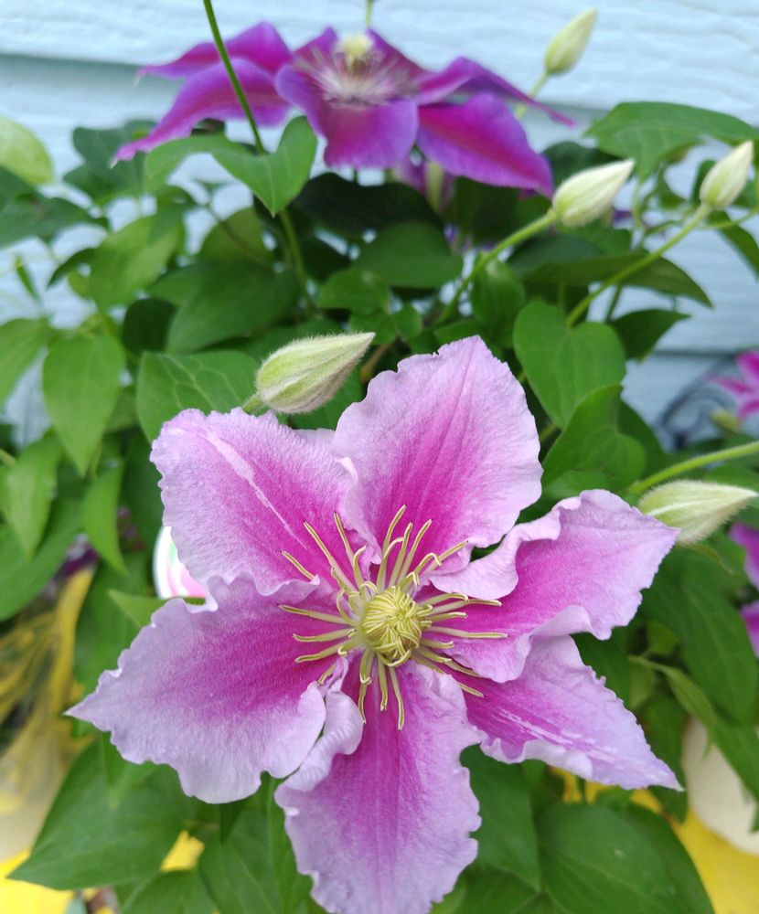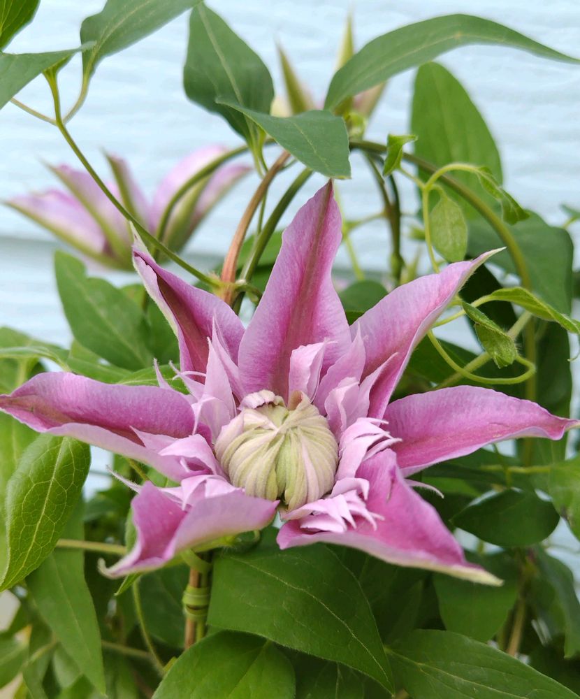 ②③一鉢に2種類のクレマチスが植えてありました❇️🩷💜❇️