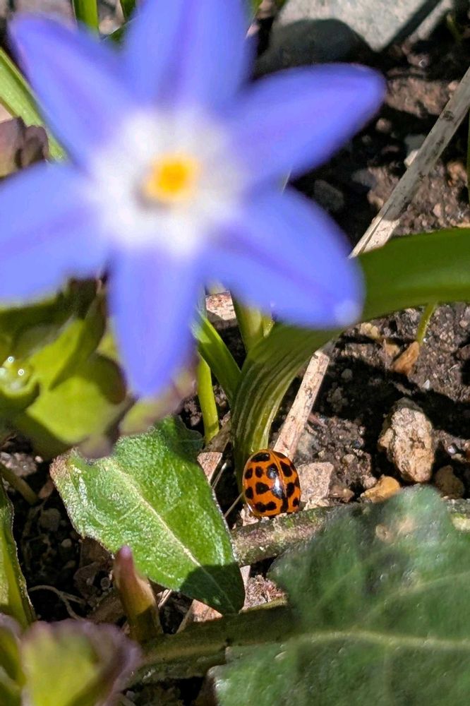 2️⃣チオノドクサの株元にてんとう虫🐞