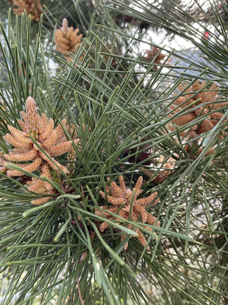 松の実?少し触れただけなのに黄色の粉がぱあーっと辺りに飛び散って…