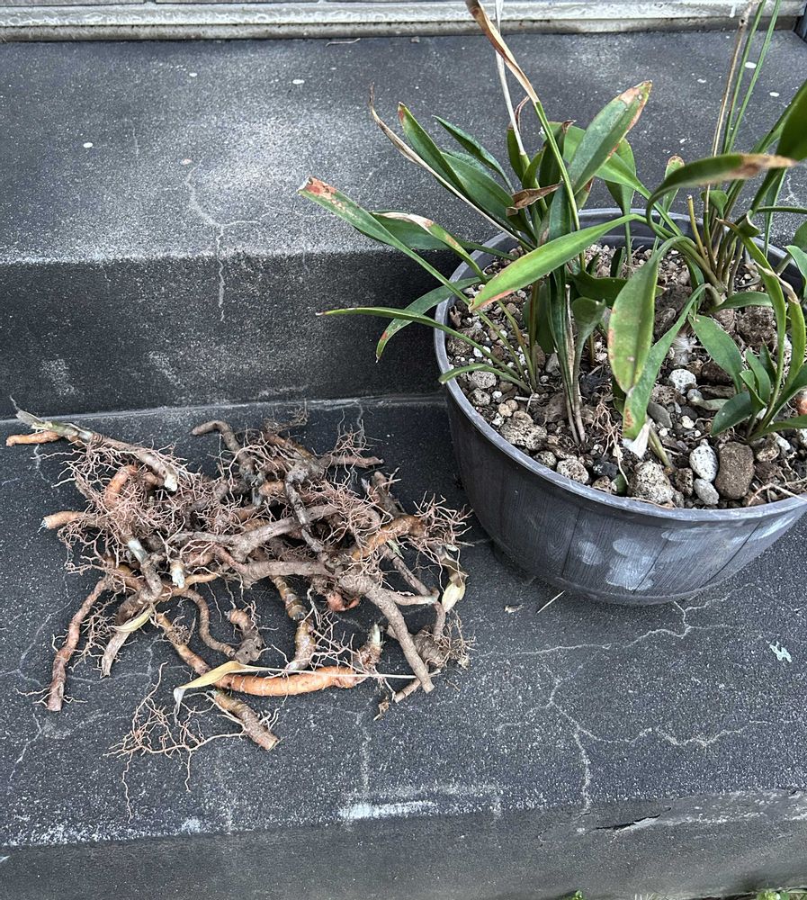 地下茎を9割がた取り除きました。(左のやつ) そして地下茎も別鉢に植えました。