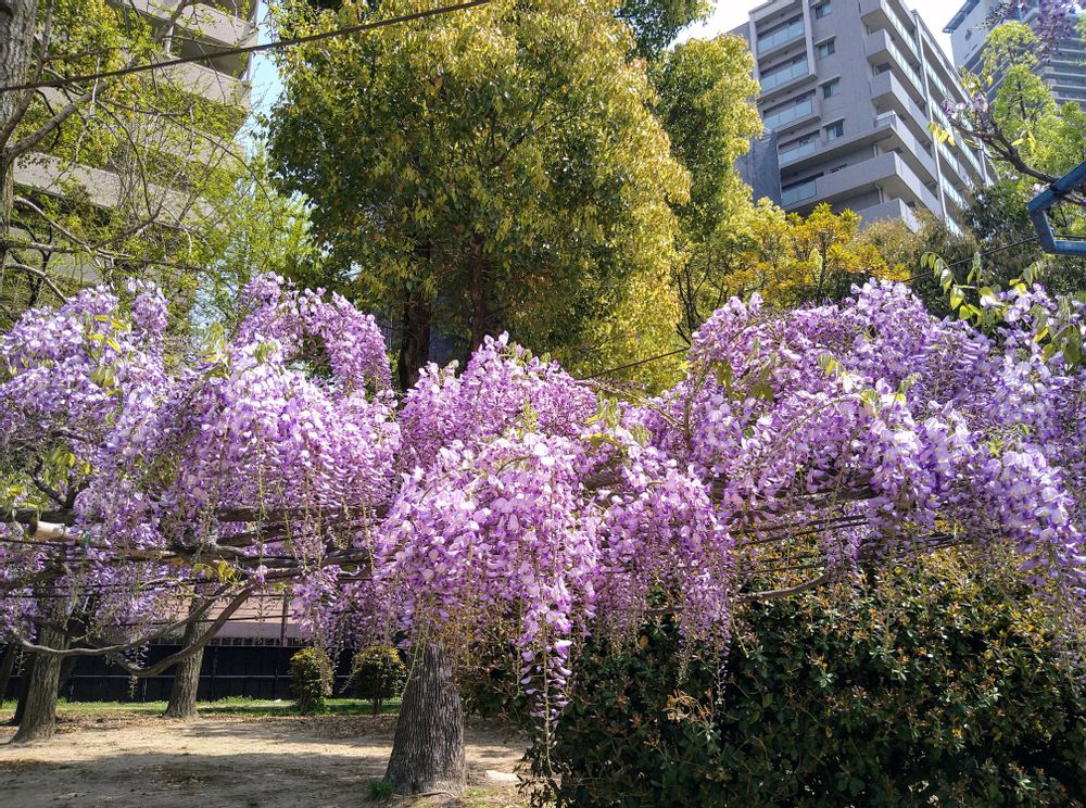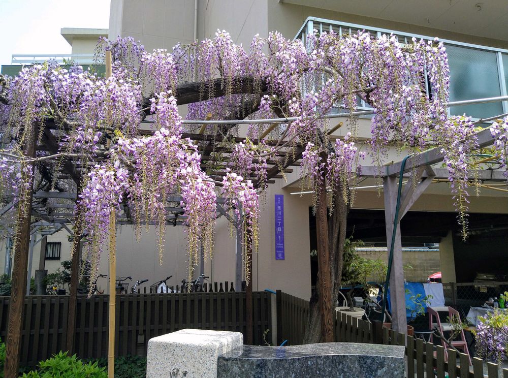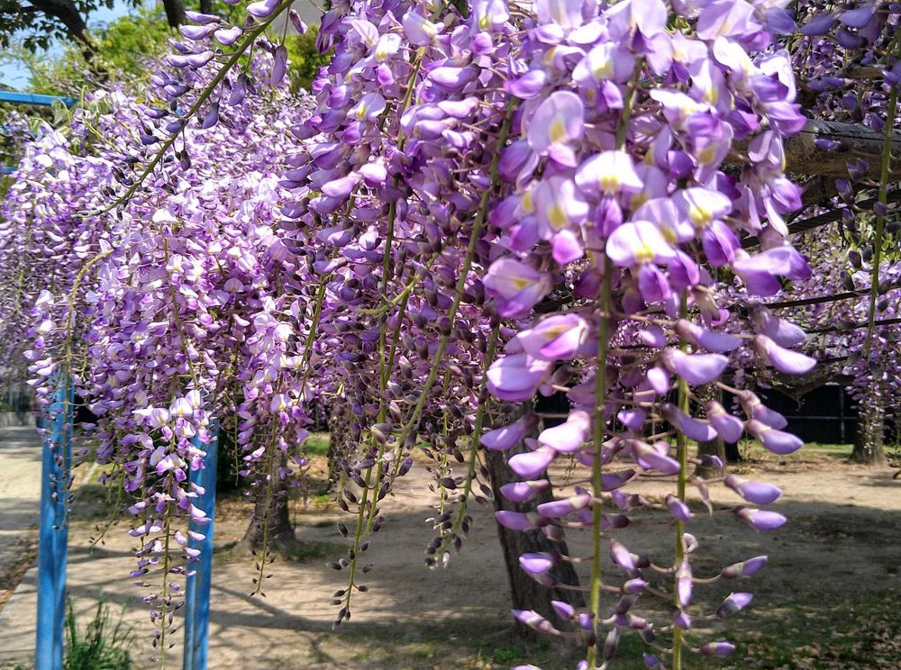 以前に泉南にある梶本家の樹齢40年の藤を一本の木から毎年4万の花房をつけるを藤を見ました