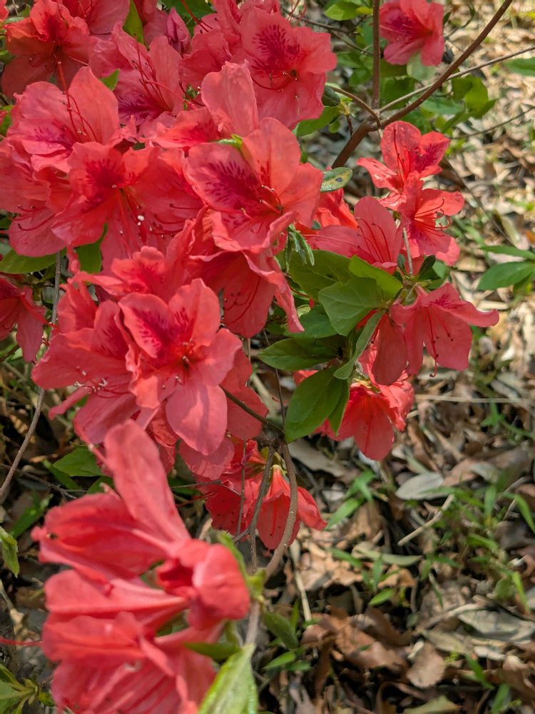 この赤い小さな花はサツキ✨大きな花はツツジですかネ〜🤓👌