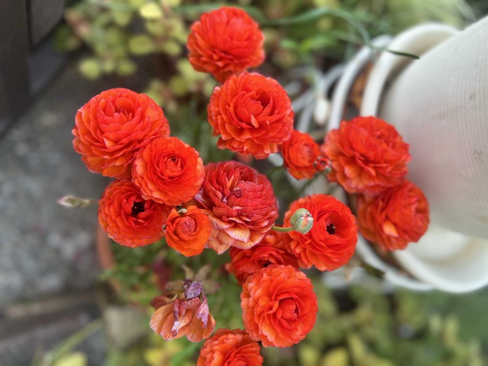 ラナンキュラス小さな鉢でモリモリ咲いてくれてます♡