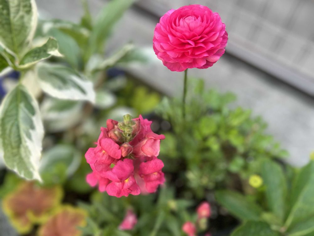 ② ピンクのラナンキュラスと金魚草③ プリムラマラコイディス!?だった⁇満開