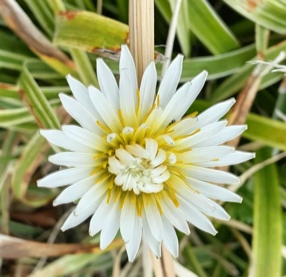 先に投稿したシロバナタンポポから少し離れた植え込みに咲くシロバナタンポポ。