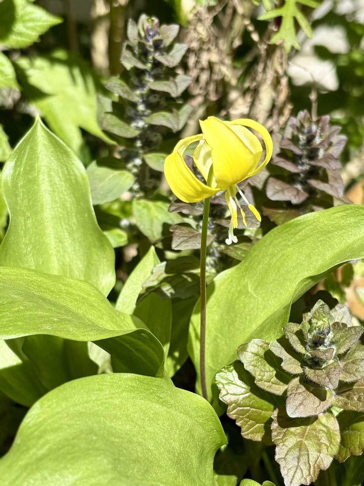 ②黄色のカタクリ❣️日陰に置いてたから咲かないと思ったけど嬉しい💕
