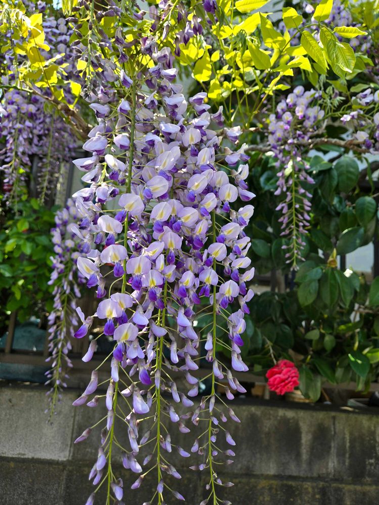 そんなに大きくない藤の木でしたが家のフェンスから道路側に出ていた藤の花とても綺麗でした😍椿も有りましたよ🥰