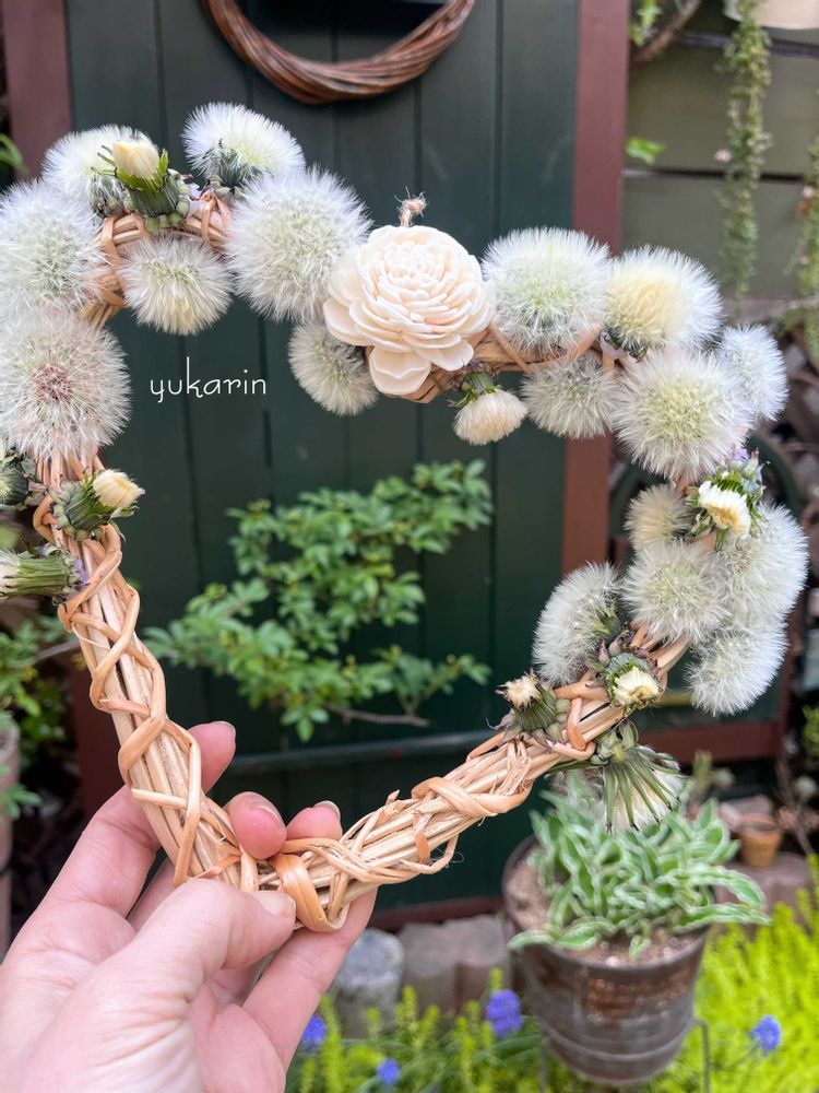 今年もタンポポの綿毛を使ってリースを制作中〜😁