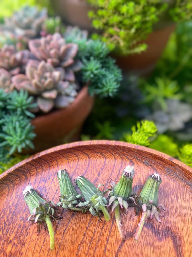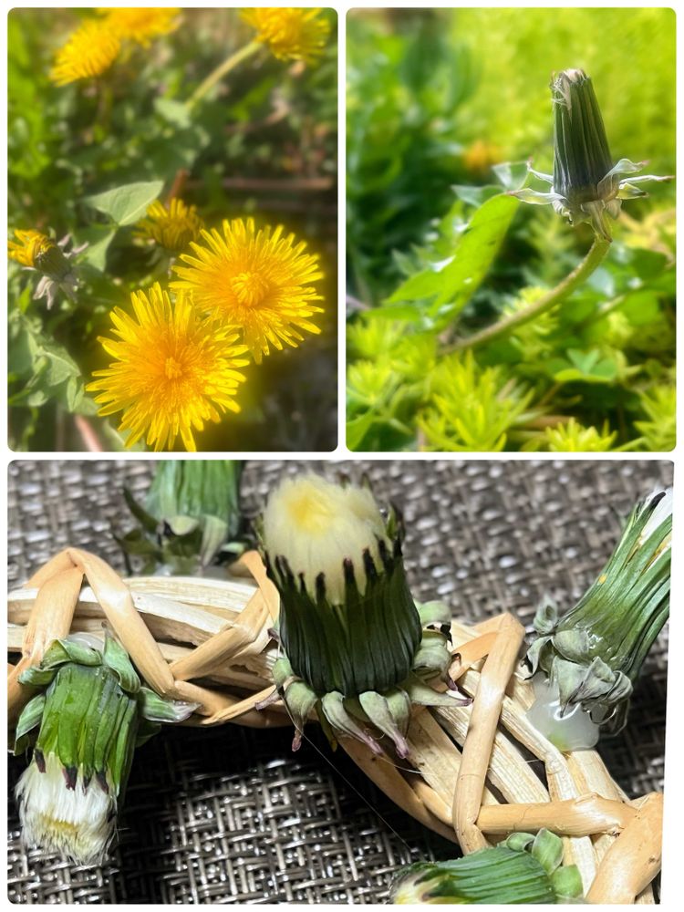 ひとり道端で摘むのは恥ずかしいので庭の片隅に種を蒔いてタンポポを咲かせ綿毛の蕾を見つけては摘み取りその都度グルーガンでハートのリース台に取り付けてます😅