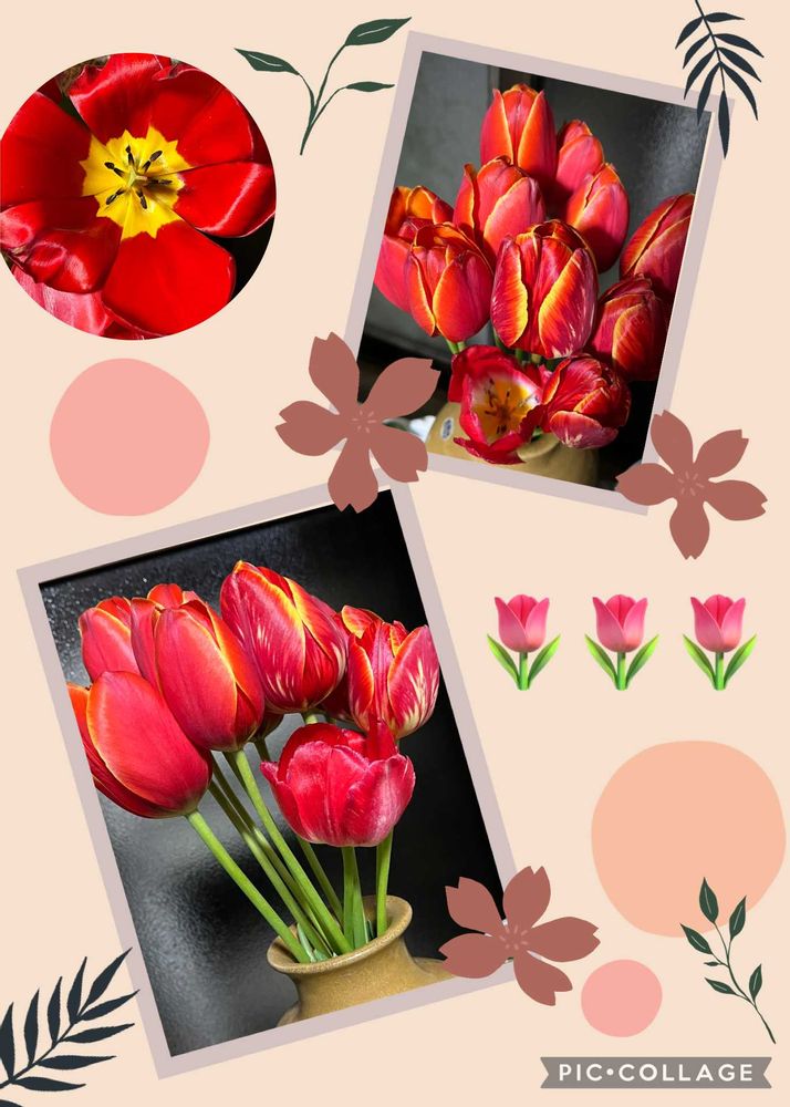 昨日、風が強くて斜めになってしまっていたのもあったり、開きすぎるほど、開いちゃったチューリップもあったので、もったいないけど、赤い茎の長いチューリップを✂️切りました…🤭