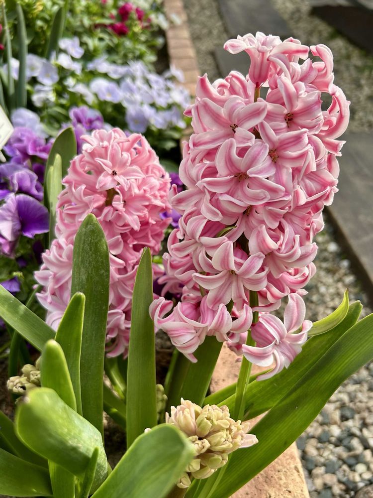 カラフルなヒアシンスが咲き誇り人々の👀眼と鼻👃を楽しませてくれますネ!🤓🪽🌈