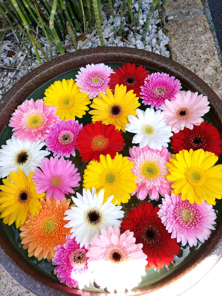 花手水、ガーベラ素敵ですね💓