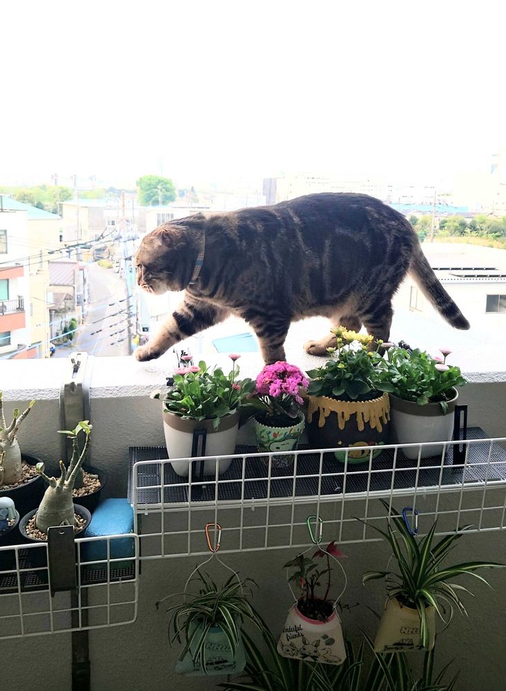 ハイ 5階ベランダの忍者猫です ✋ 💐
