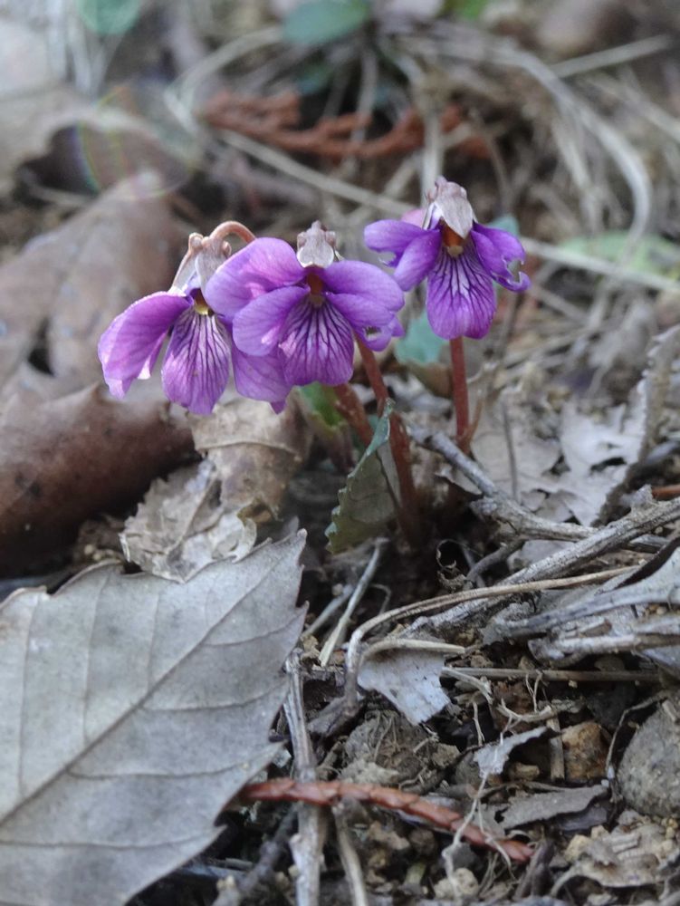 多分、後半になり首を伸ばしてきたんだと思います。ここで一緒に咲くフモトスミレも同様で、スレンダーなフモトスミレなんですよ🎵