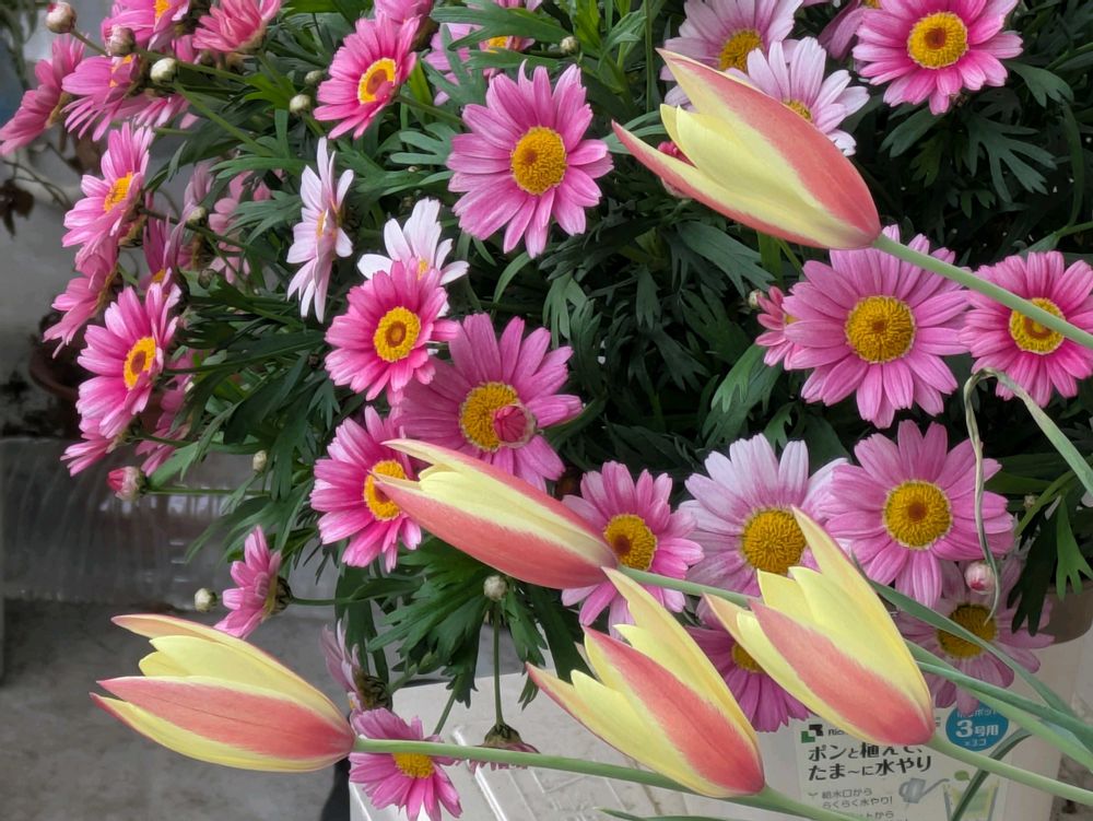 ゆんさんのベランダ,チューリップ,マーガレットの投稿画像