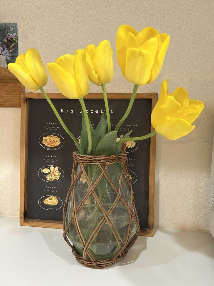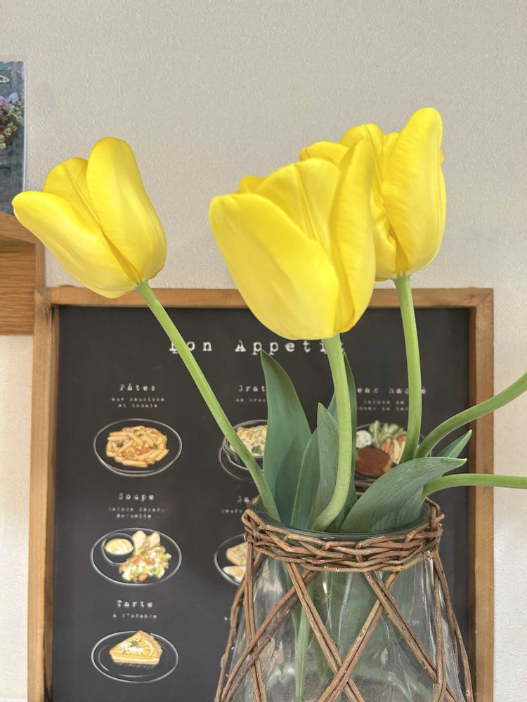 秋に植え込んだ球根のチューリップが咲いてくれて、家にも飾れて嬉しいです💛