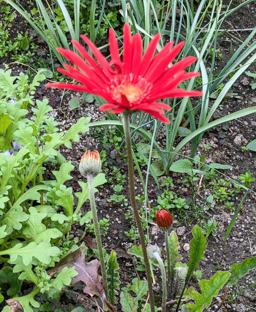 もう、この場所に何十年も春の庭を彩る逞しいガーベラです🎶