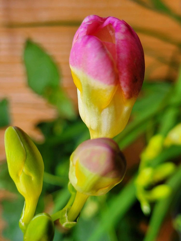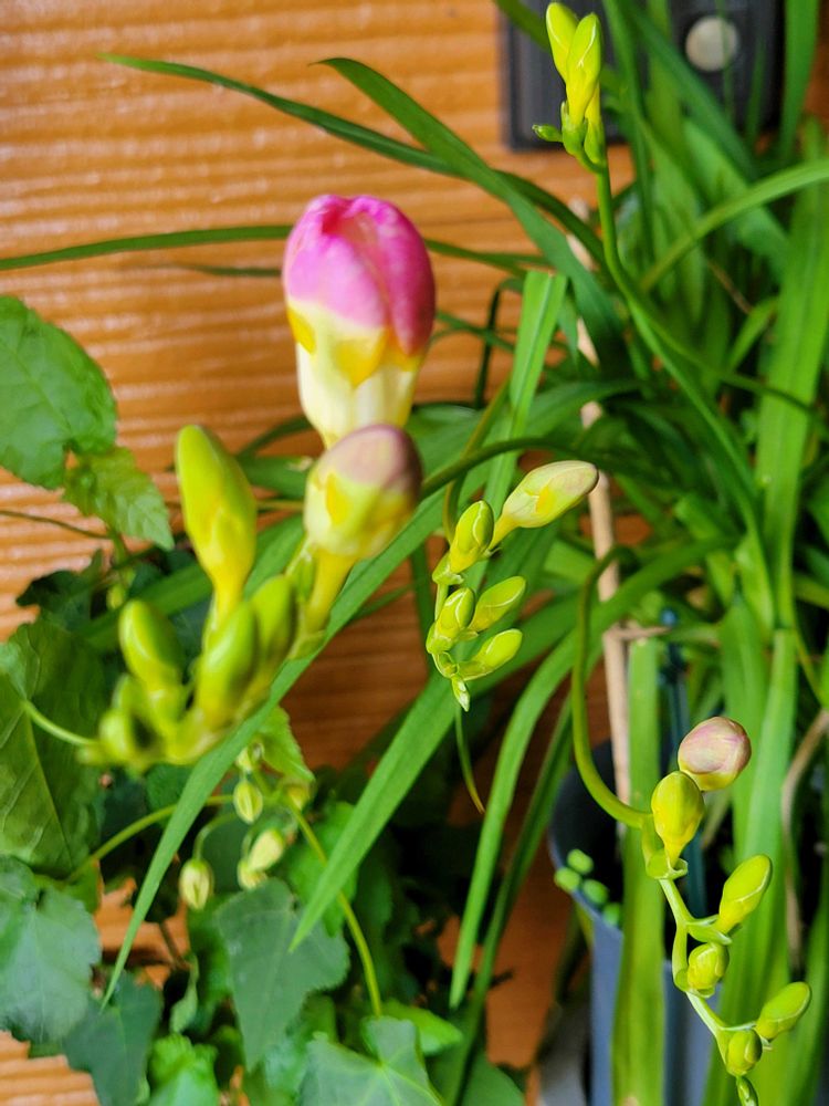 風除室では2年目の冬越しをしたフリージアがお目覚めのようです🌼💓