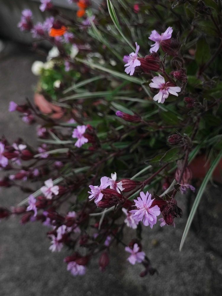 今朝の庭の花。シレネ シベラ ライラックがよく咲いてます。なでしこの仲間で、加湿にしすぎると中心からボッキリ...2鉢やってしまいましたが、ダメになった地上部を分けて挿し、色んなところでそのまま咲いています。