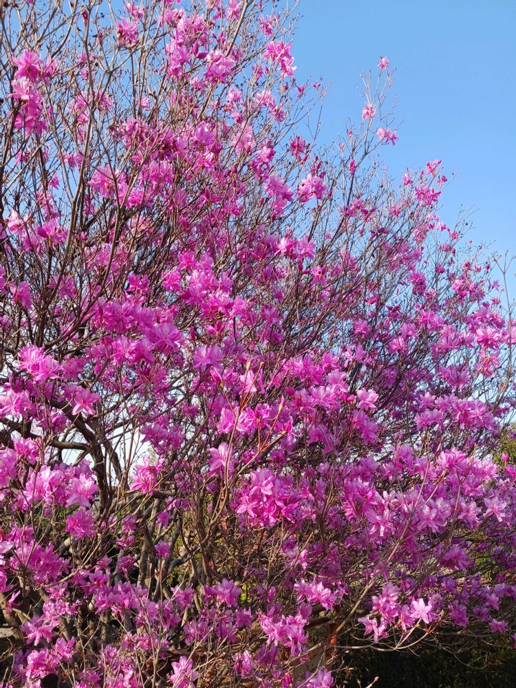 このツツジは花が咲き出すと小さな葉っぱが出てくるので満開だと🌸ばかりみたいに見えます