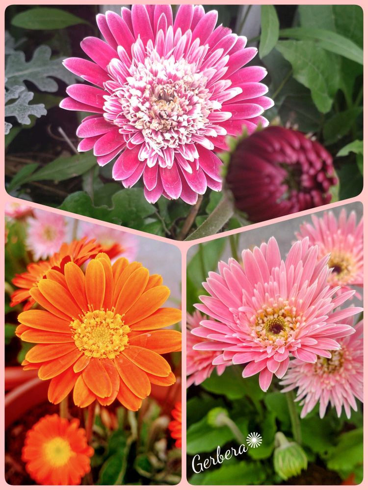 今日のお花✺ガーベラ😊今庭に咲いている3色です💞レッドは地植えで3年目✨下の2つは鉢植えで今年冬越しに成功しました🙌ガーベラの中でもガルビネアは強くて花持ちも良いです👍今日も良い1日をお過ごし下さい🐼🌼