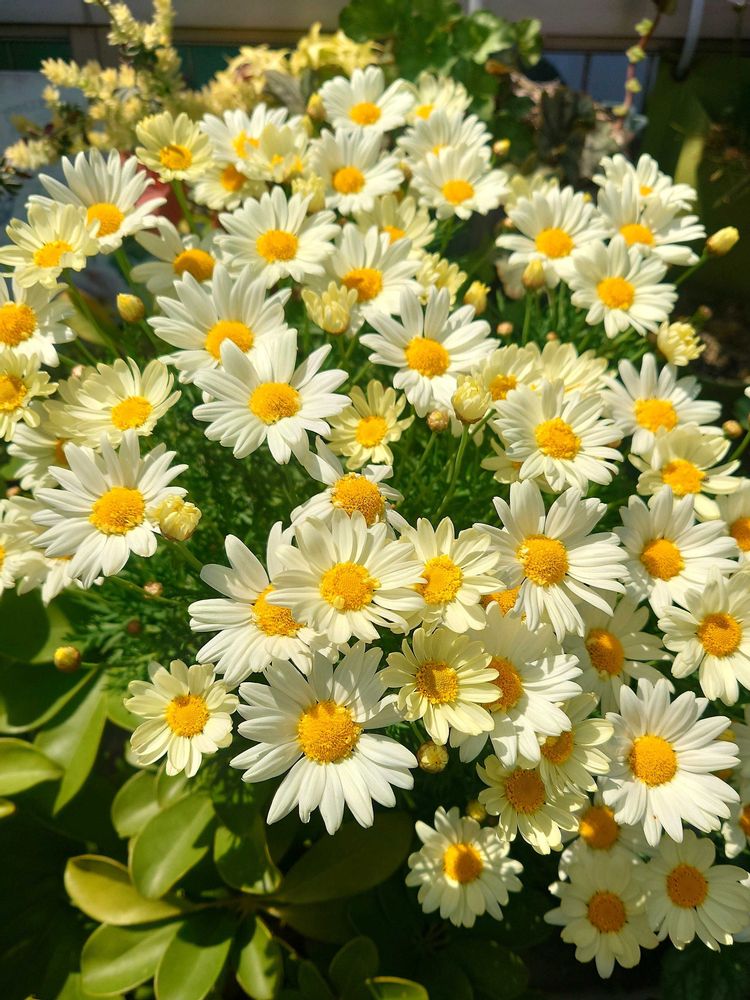 挿し木から元気に育ったイエローマーガレットちゃんが満開です🧡🧡🧡🧡🧡わが家の愛犬シェリー🐩の本日のコーディネート👚👕👖👗✨️まさしく毎日派手派手🤣(笑)