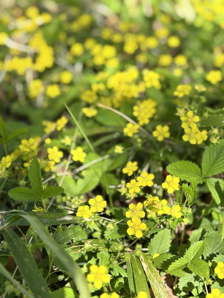 ⑤ミツバツチグリ こちらもあちこちで旺盛に咲いています。ミツバツチグリで良いと思うのですが自信なし😅