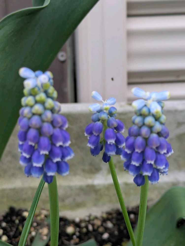 仕事から帰り可愛いスイセン、ムスカリ、チューリップの咲く姿をみると疲れもなくなり癒されています💞😉