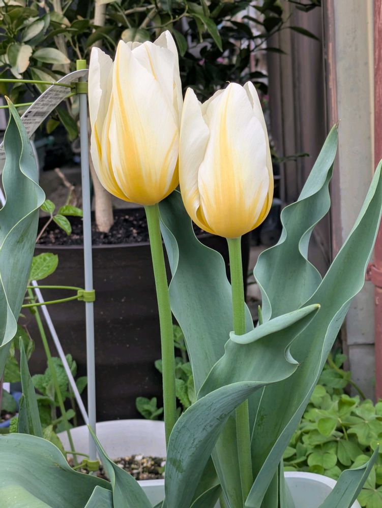 私はチューリップ白だと思っていたら黄色が混じってびっくりでした🥰