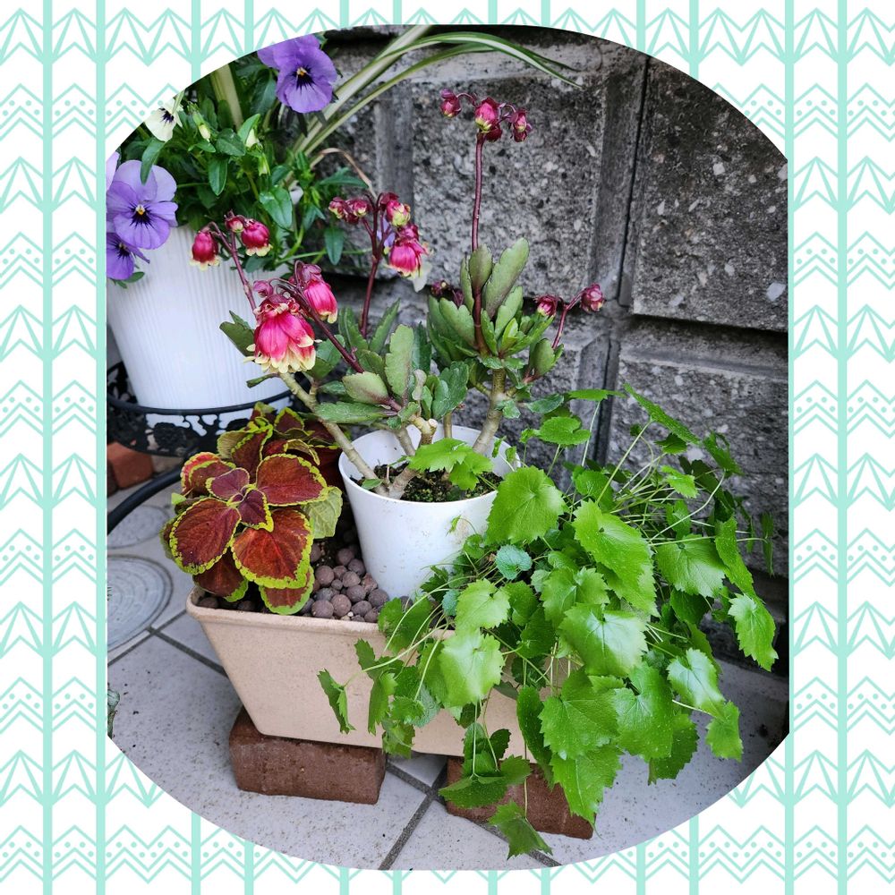 新入りのコリウスさんの一つと休養中だったカンパニュラ カムラリアエさんがもりもりしてきてたので両端に添えました