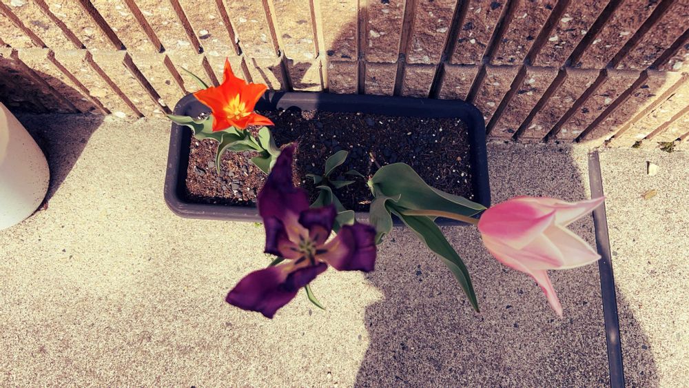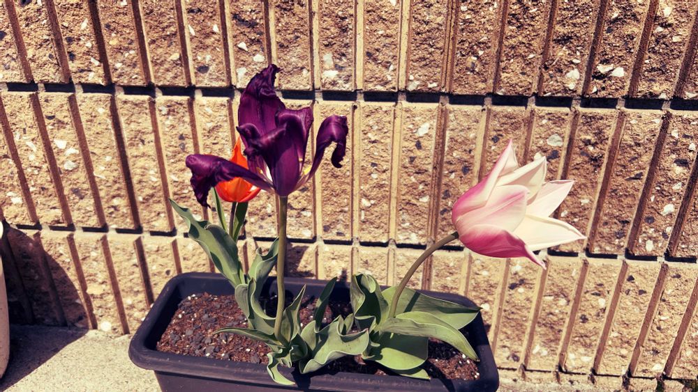 初めてのチューリップは3種類の色です咲いてくれました!!可愛い😍
