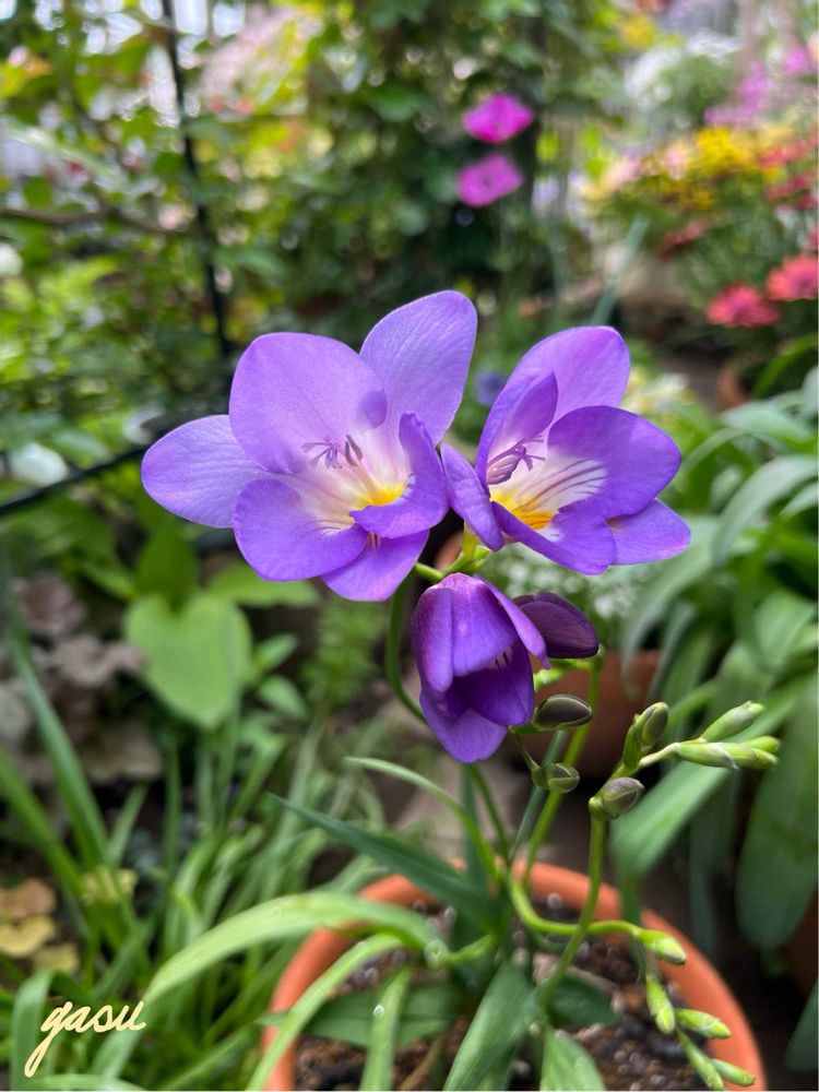 ②昨日に続きますがパープルのフリージアも咲き始めてます💜