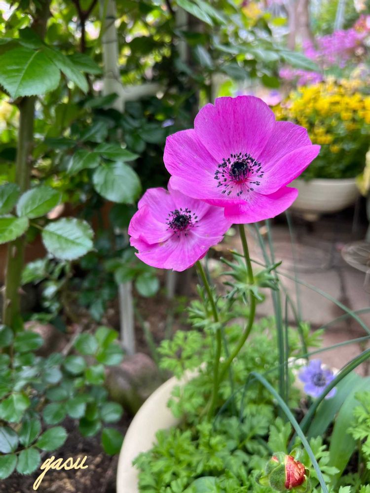 ③球根寄せ集め鉢で途切れず咲いてくれてるアネモネ♪